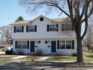 This is a two-story side by side duplex. The first floor features a living room, half bathroom off of the kitchen, dining area, and a kitchen that leads out to a patio. There are two bedrooms located on the upper level as well as a full bathroom. The lower level (basement) features a family room with a fireplace, half bathroom, and a utility room with washer and dryer hookups. Both sides of the duplex have two-car detached garage.